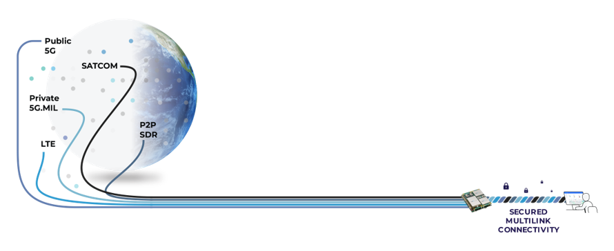 - Multilink Aggregation: Cellular, SATCOM, RF used concurrently